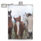 Fyra olika Färg-hästar, höftkolv Fickplunta