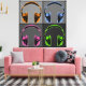 Fyra konsthögtalare, varje hörlurpar visas inom en kvadrat, var och en med en annan nyans av grått. Hörlurarna är i orangens, blått, rosa och grönt med svarta skuggor som definierar hörlurarnas former och konturer. Formgivningen av de fyra konsthögarna har ett gammaldags återseende och är perfekt för dem som har musik från kärlek, som föredrar att lyssna på sin musik utan inblandning från omvärlden och DJ:s som kärlek snurrar sin vinyl. Besök ElectricPopSpot-butiken och bläddra bland alla våra fantastisk-musiktemade popkonformskonstruktioner! ElectricPopSpot - Omvandla poppkulturen till poppkonst!
