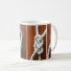 Fyra knop visas på brunt läderbakgrund och visas som fyra paneler som figurerar runt mugg. Underbar gåva till segelentusiaster, sjakt- eller båtägare eller vem som helst som kärlek en liten bit av havet. Knapparna: lakan böjning, tjuvskytts knut, vagnsbög och tarmlinje.