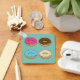 En illustration av fyra olika munstycken, jordgubbar i rosa, brun choklad, blå bubblgum och vit choklad med färgstark sprinkler för söta valentineser i tealbakgrund. Den här mönster söta tecknaden är en presentidé för sött och efterrätt älskare och ringnöts älskare.