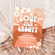 Fira i retro-stil med denna groovy barnkalasinbjudan som innehåller levande regnbågsbågar, prästkragar, fjärilar, fredstecken och lekfull 70-talsinspirerad typografi. Perfekt för en 4-årsdag, denna färgglada design ger fred, kärlek och kul till din fest. Anpassa med fstdetaljer för att skapa ett unikt minne som gästerna kommer att älska. Idealisk för hippie-, flower-power- och vintage-temanpartyn, denna inbjudan sätter tonen för ett glatt och minnesvärt evenemang.