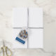 Personliga gåv- eller favorittaggar med en vacker tallkottekrans med blå, silver och vita dekorationer, hälsningen God Jul och ditt namn. MATCHANDE artiklar i vår kollektion.