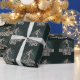 Bigfoot Sasquatch i en julhatt, som drar hem en stor grönt väska av Julklapp. T-tröjor, kort, novelty-presentartiklar.