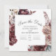 Meddela din bröllopsdag med detta stilrena fyrkantiga "Spara datum"-kort med en elegant akvarellblommig komposition i rika burgunder-, rosenskära- och elfenbensfärgade nyanser. Den moderna fyrkantiga layouten ger kortet en modern kant, medan den neutrala beige akvarellstrukturen på baksidan ger en varm och romantisk finish. Perfekt för boho-, rustika eller trädgårdsinspirerade bröllop, erbjuder denna design en balans mellan tidlös skönhet och modern charm.