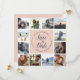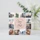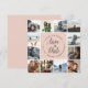 12 favoritfoton med den här unika kvadraten sparar datumkortet. Dina foton är placerade runt en central inslag i rosa, där namn, bröllop-datum och -plats är böjda runt "spara datumet" i kalligrafibrelet för elegant.