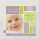 Fyrkantig lapptäcke lila designer födelseannonseri meddelande