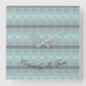 En designer-fyrkantig klocka i grått och turkos. mönster kan vara personlig till vilken färg som helst, tillsammans med det inspirerande textmeddelandet är det säkert att även tidstexten kan tas bort.