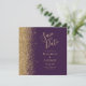 Fyrkantig Mörk Lila Guld Glitter Spara datum Meddelande