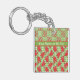 En roligt, dubbla-sidig nyckelkedja för att anpassa, med två land-stil, blanda n'match-mönster av söta röda drakar på en grönt och vit check gingham-bakgrund.
