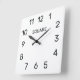 Fyrkantig väggklocka med modern visardesign. Personliggör med eget namn eller text. Svart och vit minimalistisk design. Ladda upp din egen bild om du vill. Bra tidhållare för hemmet, kontoret, hallen, klubben och mer.