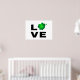 Texten Kärlek är gjord av brev och en grönt av fyra klöver som har tur i löv. Låt kärlek och tur vara med dig. Patrics Day-tema. Väggkonst Poster