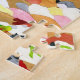 Ett pussel av en fyr och en stenig shoreline med fiskmåsar, rockpools och en avlägsen tankfartyg, från en handpainted papper collage av Judy Adamson.
