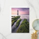 Det här fotot från fantastisk Getty Bilder har sol-inställningen i Perch Sten fyr med grönt moss och sjögräs förgrund.