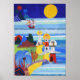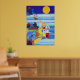Det här är en målning av Jean Tori av Leo, Falcon's frakt som seglar mot Grönt Island från barnens bok, "Leo's Birthday Äventyr". Ön, som brinner med färg, har tre fyrar som vägleder den inkommande frakten som färdas över det rullande vågar. En stor gult måne sitter i bakgrunden, med vulkaner i rött och blått. Bilden illustreras av Jean Tori med Tempera/Guache.