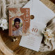 Att fylla 40 förtjänar en fest som är lika unik som födelsedagsflickan! Våra rustika bohemiska inbjudningar sätter tonen, med en livfull orange bakgrund, regnbågsbåge, personlig foto och öken-chic-ackrediteringar. Lätt att anpassa och perfekt för att skapa oförglömliga minnen.