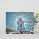 Fyrtorn hav marinblå vintage rustic strand skrapbok papper. Vacker retro stil tryckt design presentpapper. Dekorativt kustnära bild. Turkos foto konst av Killarney, Ontario Kanada. Klippor i förgrunden, gammal röd vit fyrtorn och texturerad himmel. Detta 110 g papper kan användas för ditt fotoalbum, hantverk eller decoupage-projekt som kräver tyngre papper. Bild upphovsrätt Marg Seregelyi Photography.