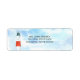 Etikett med fyrtorn vid strand sjöfart tema returadress - koordinater perfekt med inbjudan.