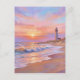 Fyrtorns strand solnedgång - Pastell Målning Stil Vykort