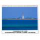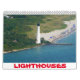 Tolv månaders kalender med foton av fyrar runt Förenade Stater