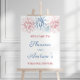 Denna välkomstskylt för festen har min ursprungliga akvarellillustration (av röda och blå fyrverkerisprängningar), handmålad av mig innan den skannades in i digital form. Visas här för en sambröllopsfest, men all text kan anpassas efter dina behov.