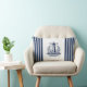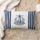 En marin blå stripe i sjöns lumbalkudde med fyr-märke. Färsk och tydlig tittar utformning för nautiska dekorationen och kusten. För alla sjömän och alla, som kärlek nautiska, kust, New England, Hampton, Nantucket Stil.