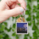 Fyrverkerier över staden fyrkantig silverfärgad nyckelring
