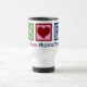 Den här söta fysiska terapeutiska resemuggen har ett söt fredstecken, hjärta och brev PT. En vacker fysisk terapi. Fredens Kärlek fysiska terapi.
