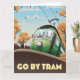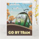 Gå efter ram, vintage tecknad reseaffisch med en gammal vintage Tram.
