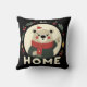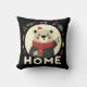 En humoristisk julrelaterad kastkudde-design med en söt björn som bär en tomtehatt och halsduk, pekar med ett allvarligt uttryck. Omgiven av festliga element som julblad, bär och ornament, lägger texten "Gå hem" till en lekfull twist. Perfekt för juldekoration med en touch av humor och charm.