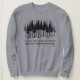 Gå i trät som är ljust - grå färgtröjan. Svärta skogen som är grafisk med citationstecken.