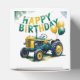 Fira i stil med den här charmerande vattenfärgillustrationen med en pulserande gult- och grönt traktor som vilar i ett grassligt fält med färgstarka blommor. En festiv banderoll för grönt och gult stolt visningen "Grattis på födelsedagen", medan matchande ballonger bidrar till den heliga atmosfären. I bakgrunden fyller ett rustiskt byggnaden denna härliga land-inspirerade scen, perfekt för en gårdstäckande födelsedagskalender!
