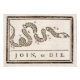"Gå samman eller dö"-ormkartongen, en kraftfull symbol för enighet, skapades av Benjamin Franklin 1754. Den dök upp under en tid av ökande spänningar mellan de brittiska kolonierna i Nordamerika och fransmännen och deras indianallierade. - Fransk- och Indiankriget närmade sig, och Franklin, som var delegat vid Albany-kongressen, insåg behovet av enighet mellan kolonierna för att effektivt motverka det kombinerade hotet. Han såg de splittrade koloniernas svaghet som ett stort handikapp som försvårade deras förmåga att organisera ett samordnat försvar. - Franklin tog inspiration från olika källor, inklusive ett franskt ordspråk och illustrationer från naturhistorien, och skapade "Gå samman eller dö"-bilden. Den avhuggna ormen, uppdelad i åtta segment som representerade kolonierna, fungerade