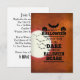 En stor moonlit, mörk orange, himlar med silhuette, svart fladdermus. Svart typografisk inbjudan med ett stort fladdermus överst, två svarta pumpor och två små svarta spindlar. Baksidan är en fullkomligt anpassade, roligt dikt inbjudan till dina gäster!