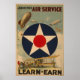 Ett Världskrig som jag poster som visar Luft Service-insignierna, olika flygplan inklusive flygplan och stympade flygplan, och en besättning som flyger till flygplan i förgrunden.