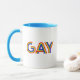 Den här teckningen har ord Gay i ett färgstarkt regnbågsteckensnitt.