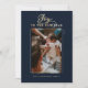 Önska din familj och dina vänner i gott nytt år med vårt elegant faux guld calligraphy och marinblått Gott nytt år enfamiljs fotokort. Utformningen har en platshållare för foto som visningar ditt speciella familjefoto. "Joy to the New Year" visas i ett calligraphy-skript och textparsning för faux guld i elegant. Anpassa med års- och familjenamnteckning. Baksidan har en enkel elegant faux guld rand-design.
