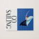 Gå på vintagen 1980-talets stil nautiska reseaffisch för en segelbåt på havet.