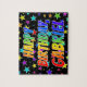 Den här livliga och spännande pusselpusslet med födelsedagstext innehåller budskapet "GRATTIS PÅ FÖDELSEDAGEN, GABRIEL" med tecknen med färgstark regnbågsspektruminspirerad gradient mönster, förutom roligt star fält bakgrund mönster. Ett spännande pussel som detta kan vara ett roligt sätt att skicka ett födelsedagsmeddelande till någon som heter Gabriel. [~Z0000468]