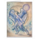 Gabriel med kort mörkt hår och stor blåttvingar, rymmer ett svärd i en stridighetstance som ha på sig modern stadskläder, snöflingor som att driva besegrar runt om henne i en stads- vinterplats, med en stor stad i avståndet. Den stora månen är bak henne. Swils av blått och varma grå färg dominerar målningen. Vattenfärg- och bläckpennamålning på varmt pressvattenfärgpapper, från min ärkeängelserie, som inkluderar Gabriel, St Michael, Raphael och Uriel.