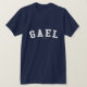 Gael! Är ditt namn Gael? Eller har du en make, en pojkvän, en male familjemedlem eller en manlig vännen namngav Gael? Om så, är denna "baner" skjorta exakt gåvan som du söker efter! Designen presenterar "Gael" i välvd vitbokstäver över bröstkorgen i klassikerhögskolastilsorten.