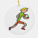 Den gaeliska fotbollsspelaren springa med boll i gaeliska fotbollens hårda men rättvisa spel.