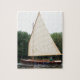 Traditionell öppen vagn riggad segelbåt på Norfolk Broads som fick en bogserbåt efter att vinden dog.
