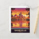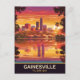 Gainesville-vykort. Solnedgång över Gainesville, Florida. Stadskylten på vattenfronten. Resevykort i vibrerande färg.