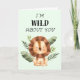 Illustration av en baby söt lejon med blad och livfull typografi "Gal efter dig".