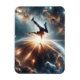 En hisnande illustration av en brytare som utför en kraftig frysning i mitten av en galaktisk explosion. Denna kosmiska gatukonst firar sammanslagningen av stadsenergi och universell - idealisk för dans på älskare, sci-fi fläkt och rymdämmare.