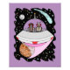 Med en robotpilot på sin sida tar en människa en glädje över en orange planet och genom den stjärnfyllda galaxen i roligtens sci-fi-konst av Richard H. Fay. Detta arbete presenterades ursprungligen i SPACEPORTS & SPIDERSILK, februari 2021, som ett exempel på svartvit insida.