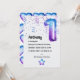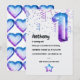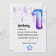 Trendig blue och lila galaxy faux foil number ballong första födelsedagsfest inbjudan med ett maskulin.