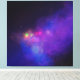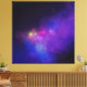 En galaxi i djupt utrymme med nebuli, lila och blåa gaskmoln och multifärgad stjärnkluster.