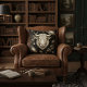 This Taurus zodiac pillow features a detailed vintage-inspired illustration set against a rich cosmic background, blending astrology with elegant home decor. The deep tones and intricate artwork create a striking yet refined accent for any room.