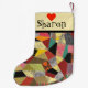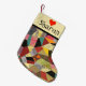 Den färgrika galna täckedesignen på denna julstrumpa har en patchwork av tyg som dekoreras med olika färger och, mönstrar inklusive polka dots, virvlar runt, randar, burlapstruktur, och mer. Färger inkluderar rosor, bruntet, turkos, gult, grått, svarten, orange, oliv grönt och rött. Det bästa musikbandet är kräm som färgas med en röd hjärta och ett monogrammed namn för att dig ska personifiera på båda sidor av strumpan. Gör en underbar helgdaggåva! Designat vid konstnär© Tim Coffey.